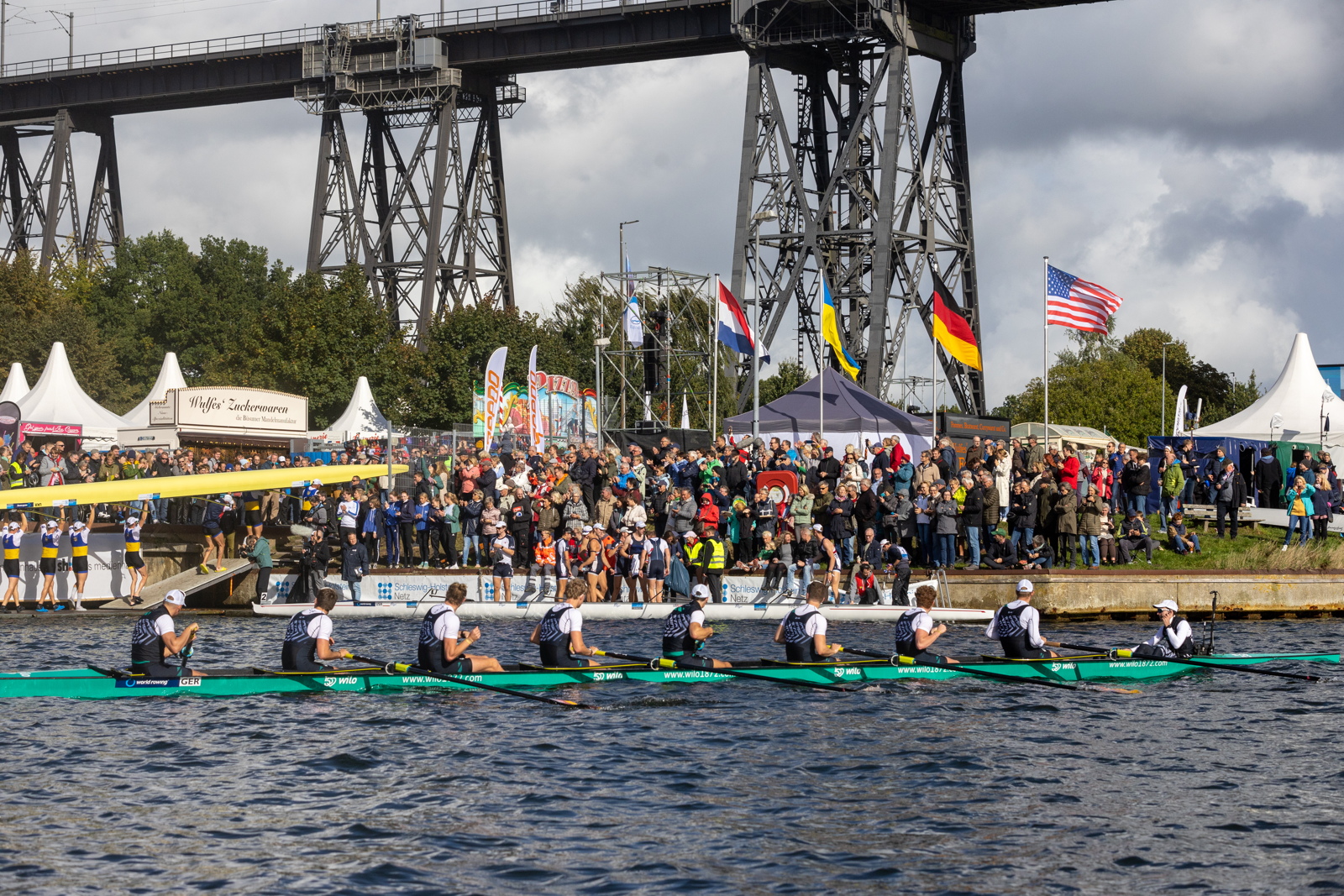 Wer den Stadtwerke SH Ergo-Cup der internationalen Ruder-Achter gewinnt, hat hier das erste Zugriffsrecht und kann sich die aus seiner Sicht beste Position aussuchen. Der Ergo-Cup wird am Freitagabend auf der Nebenbühne unter der Eisenbahnhochbrücke ausgetragen und geht über 500 Meter.
